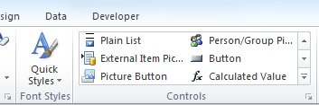 The procedure for inserting a button is the same whether you are designing a new, blank form template or basing the design of your form template on a database or other external source of data. This is because buttons, unlike most other InfoPath controls, are not bound to fields. Instead, they are instead used to initiate an action.