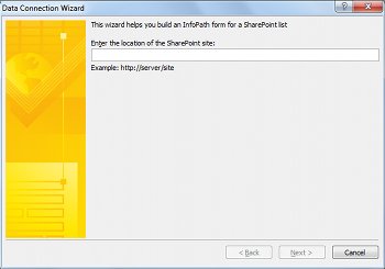 Enter the Web address of the SharePoint site in the Data Connection Wizard.