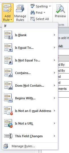 To add a rule to a control, on the Home tab, in the Rules group, click Add Rule.