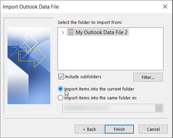 To solve this problem, rerun the import process. When you get to the following dialog box, choose Import items into the current folder.