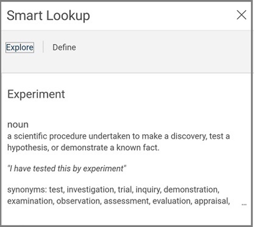 Have you ever reviewed a document or read an email and found yourself challenged by an unfamiliar word or phrase? In Microsoft 365, work smarter and quickly look up the word or phrase to get connected to multiple resources related to it.