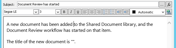 .Note: For the workflow to compile correctly, you must make some entry in the Subject field.