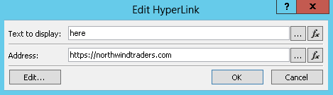 In the Edit Hyperlink dialog, select function (fx).