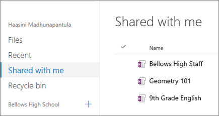 Select Shared with me to view notebooks others have created and shared with you.